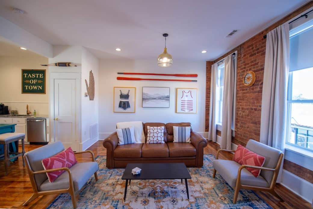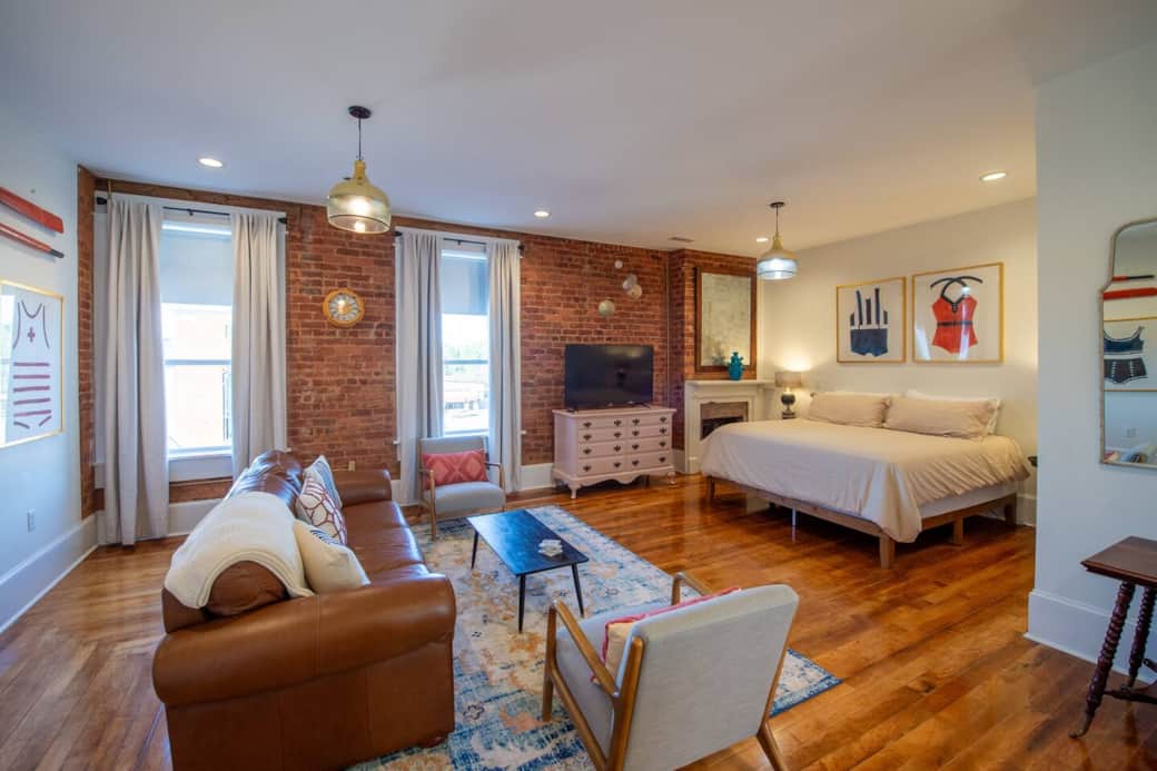 Beautifully restored downtown studio loft in the heart of Seneca featuring exposed brick, hardwood floors, and oversized windows filled with natural light. The open living area offers comfortable seating and a fully equipped kitchen with granite countertops and stainless appliances. Walk to Ram Cat Alley’s restaurants and shops, and enjoy being just minutes from Clemson for game days and events. A perfect blend of historic charm and modern comfort.